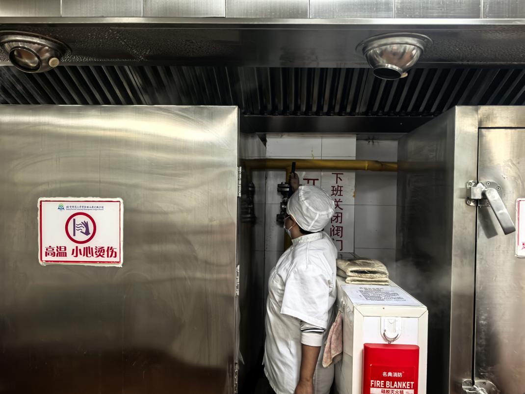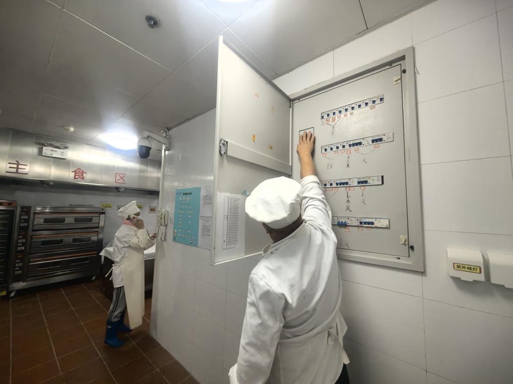 下午,厨房进行了专项火情消防演习,模拟场景中,厨房工作人员发现“火情”后,立即启动应急预案,各组人员反应迅速,分工明确,一组人员能够迅速取出灭火毯覆盖火源,防止危险扩大;另一组人员迅速切断厨房总电源与燃气阀门,并第一时间拨打园内应急电话上报情况,其余人员能够迅速持灭火器增援,控制火情,整个演练过程厨房工作人员能够按照处置流程规范操作,高效完成了火情控制,充分检验了厨房工作人员的消防应急能力。