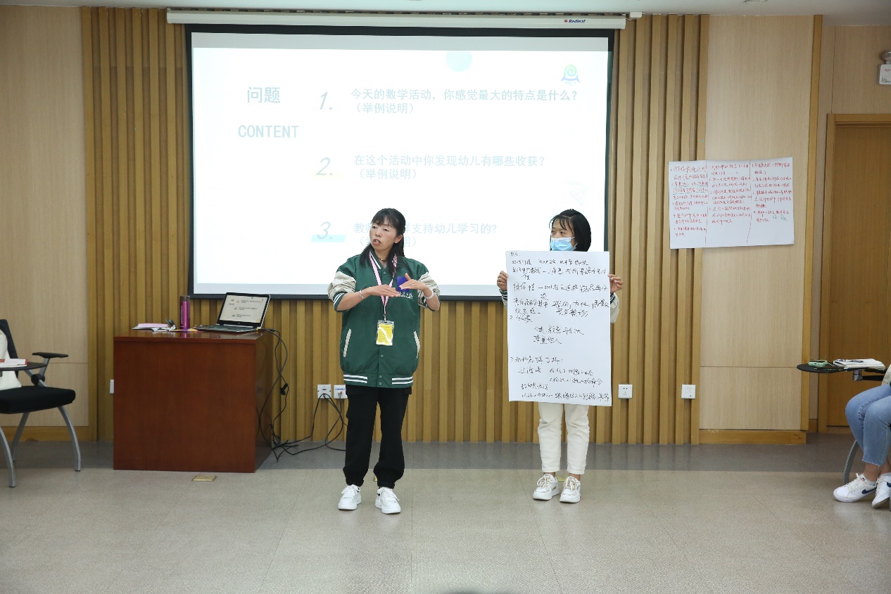 首先,我园组织学员们观摩了小班数学活动《帮兔妈妈整理玩具》和中班艺术活动《“石头”的创想》。随后,分组参观了我园的户外活动、公共环境以及班级环境,在过程中我园教师面向参观学员详细介绍了环境创设的理念、特色区域的形成、主题活动的开展情况等内容。之后,业务园长和保教主任分组带领学员以观摩的教学活动为抓手,开展了参与式的教研活动。最后,执行园长以《百年沃土发新芽,开拓新园谱新篇——在传承、发展、创新中办人民满意的幼儿园》为题全面介绍了我园在管理、课程、队伍建设、家园共育等方面的特色工作