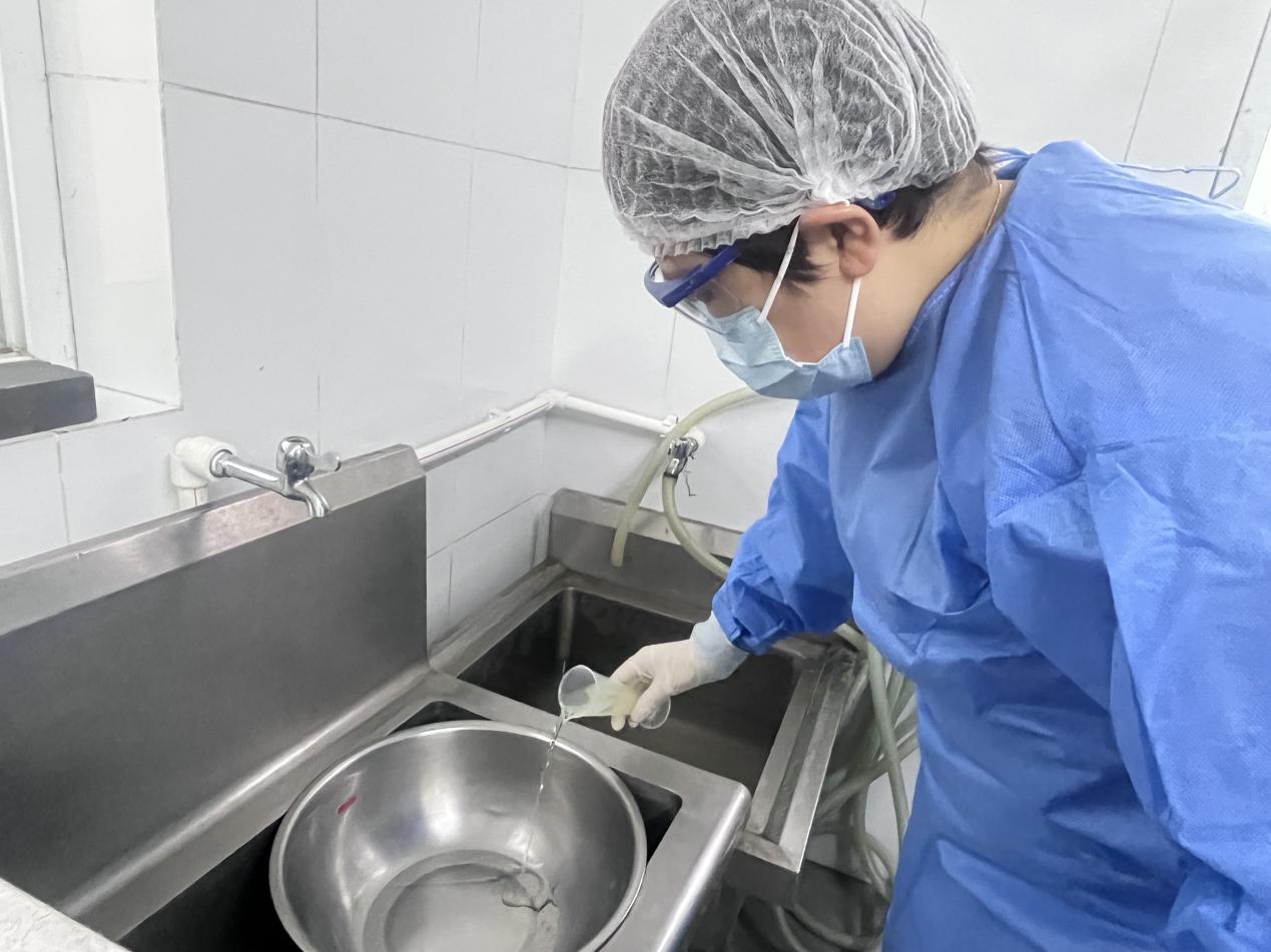 会后,保健室又对重点人群食堂人员和保洁人员进行了卫生消毒配比的现场考核,确保在紧急情况下能够迅速、正确地进行操作,有效控制病毒传播。