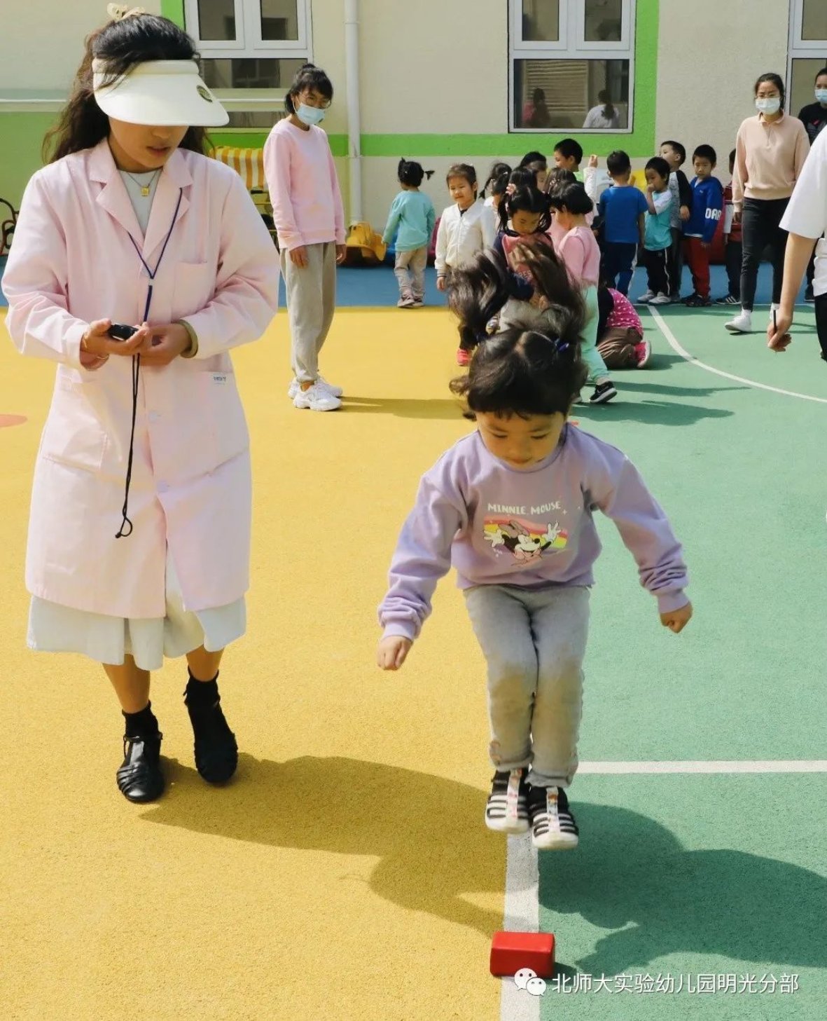 在测试过程中,保健医对幼儿测试的项目都再一次进行讲解和动作示范,在保健医和老师们共同耐心指导和鼓励下,每一位幼儿在项目中都呈现出拼一拼,再试一把的积极,努力状态,测试组织有序,幼儿在原有基础上都有所进步。