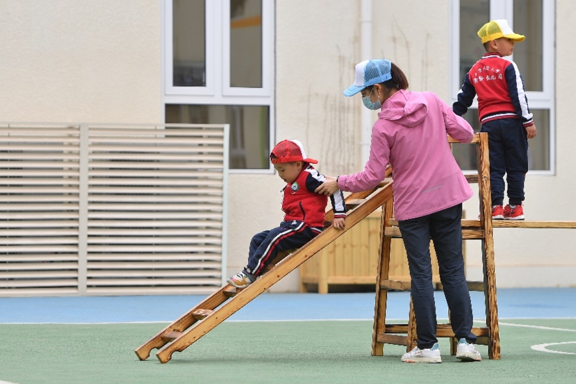 最开始玩的时候我还有点害怕,还好老师一直陪着我,我现在不怕啦!