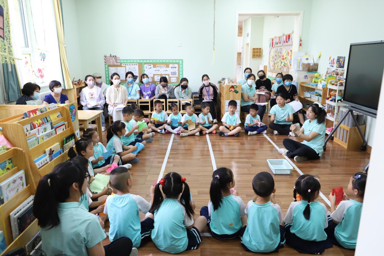 观摩结束后在保教主任王晓晔的组织带领下,新教师分两组结合半日活动现场,对照计划目标分析、研讨、表达,碰撞出准确、全面定位目标的思考点与关注点。最后培训中心主任徐兴芳邀请教研员李灵子、业务园长丁乐、督学王竺、执行园长邱守围绕音乐活动的组织、主题活动的推进、半日活动的整体组织和目标制定进行点评,帮助新教师获得了关于艺术领域的核心经验、半日活动组织的关键点、目标制定的适宜性等方面的知识与经验的提升。