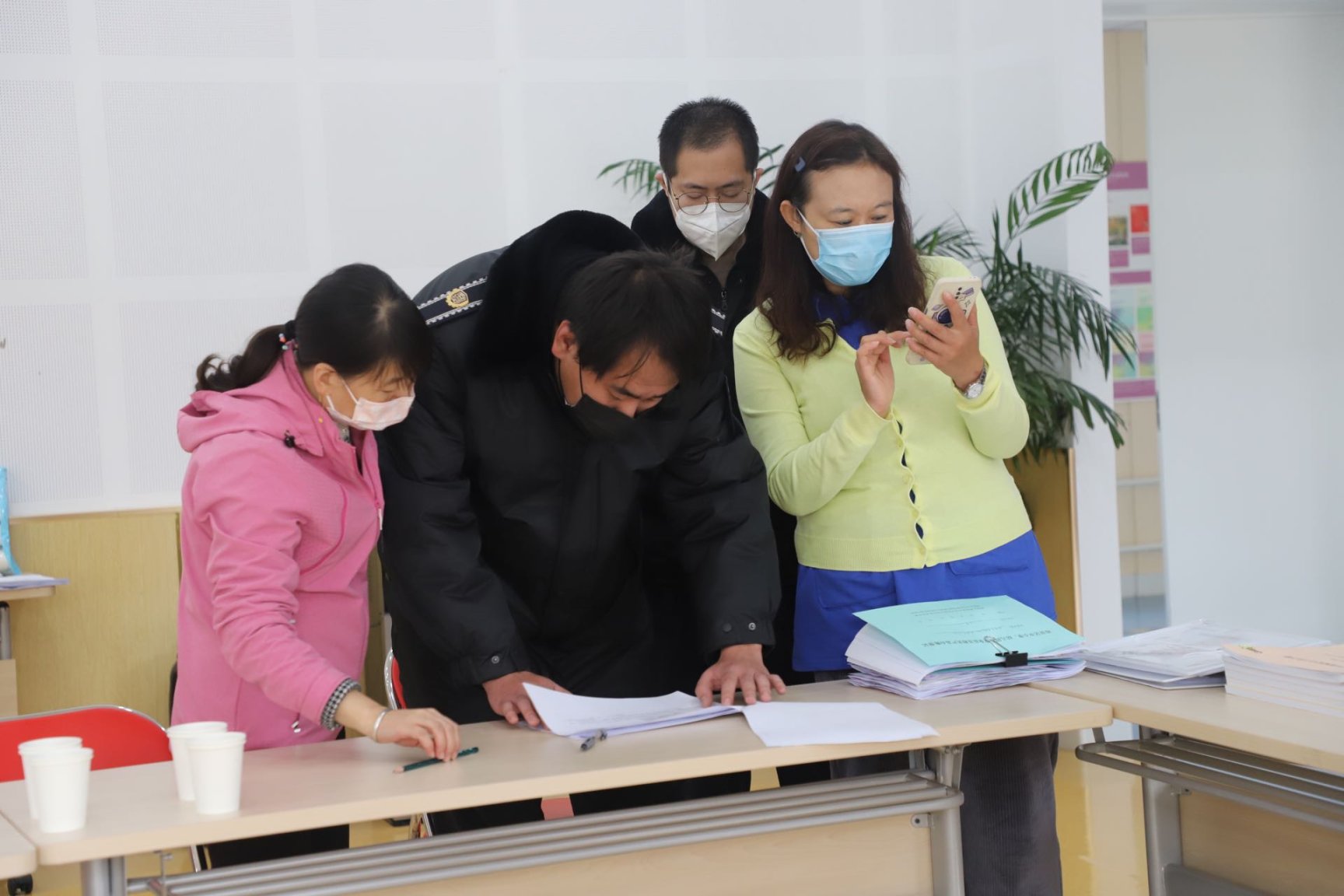 安办人员查看平安校园标准