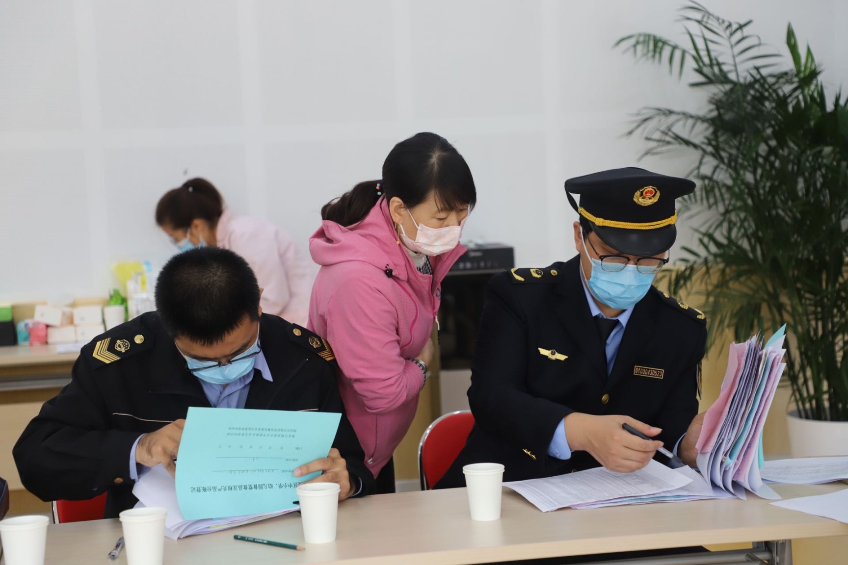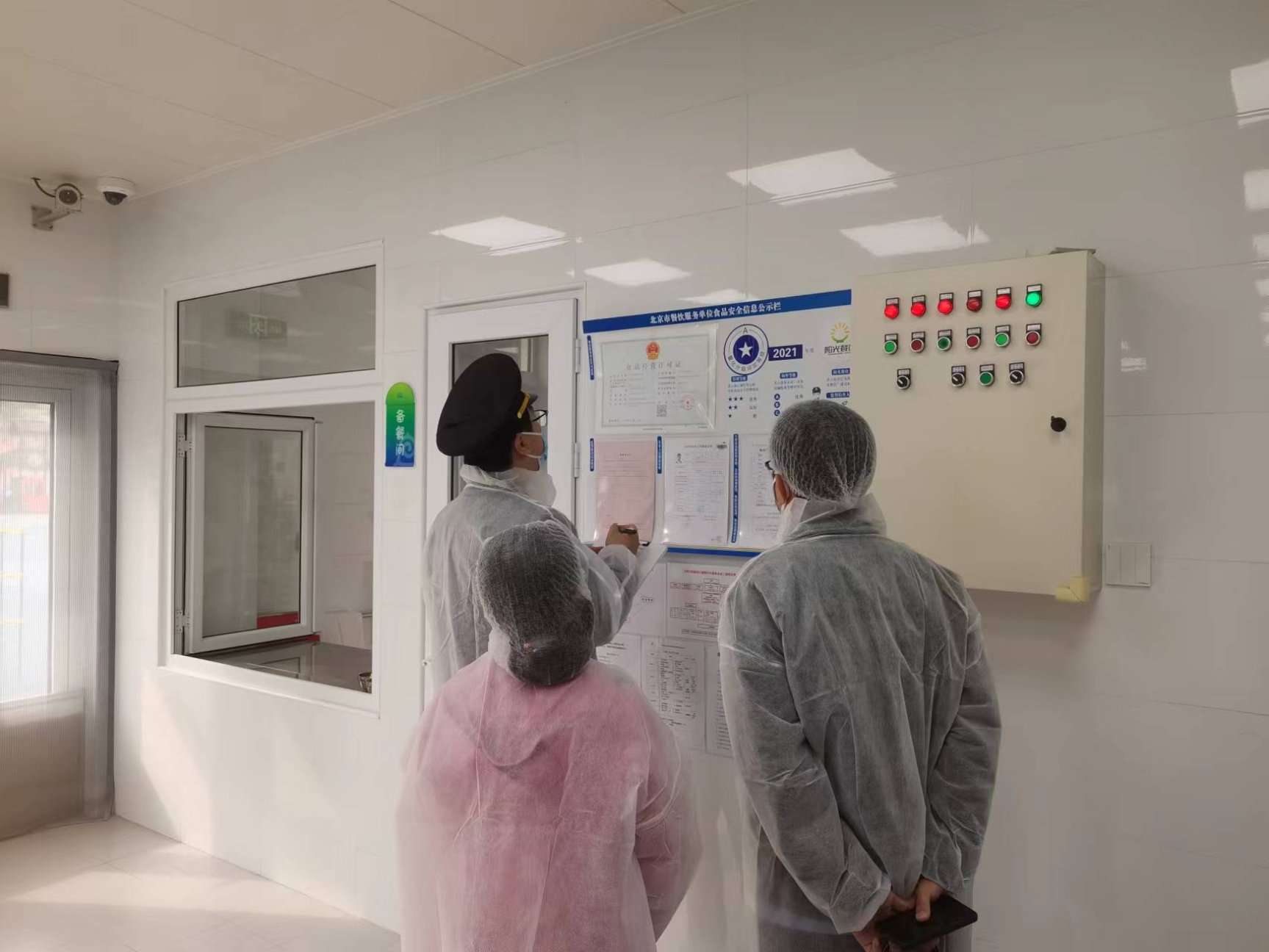 食药监人员查看食堂人员健康证和资质