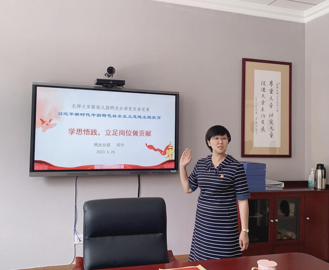 2022年11月30日九游体育实验幼儿园明光分部开展了线上党小组活动,本次活动由8名党员和1名预备党员参加,其中邱守、王晓晔、邓雨露、黄雪燕、张庆庆5位党员围绕党的二十大精神开展了党员讲党课的活动。