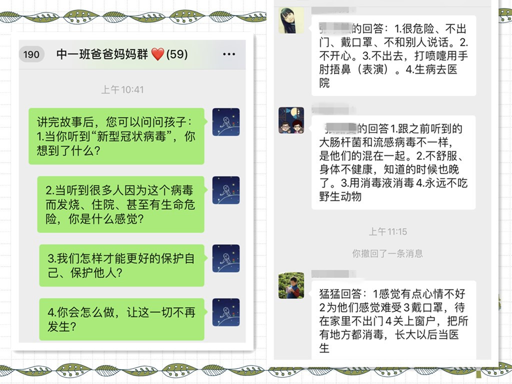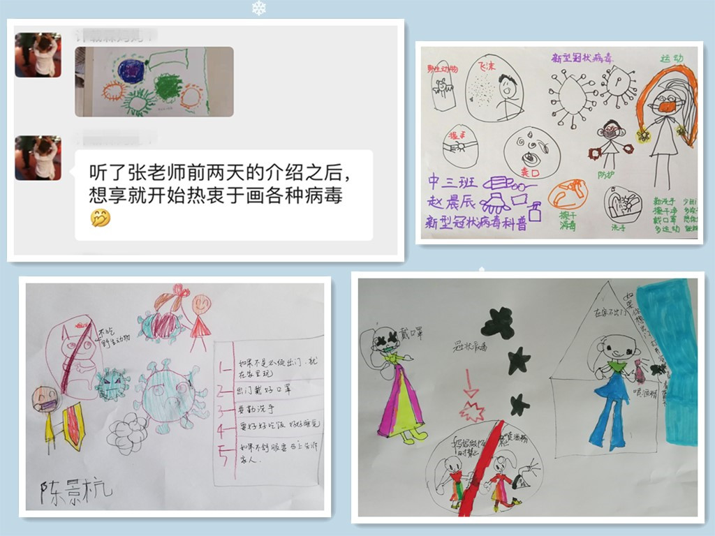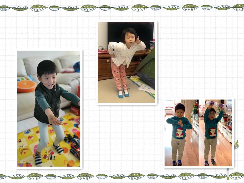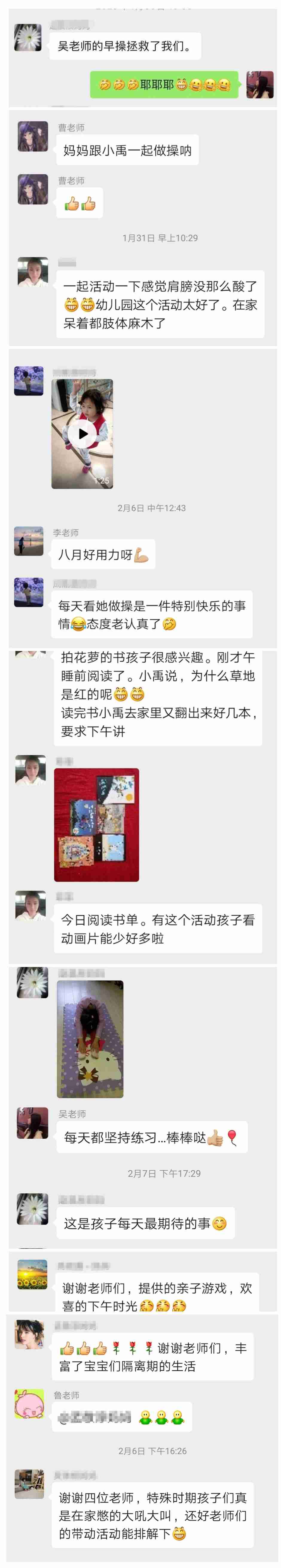 为了幼儿与家长能以积极健康的生活方式和愉快的情绪状态度过疫情隔离期,减少看电子产品的时间,我园及时成立家庭教育指导工作小组,小组成员积极讨论,认真准备好家教指导内容后,向家长发布家庭教育活动倡议书,制定科学合理的幼儿一日生活作息表,供家长参考。前期,教师调动家长与幼儿积极参与,在部分家长复工后,及时调整家教指导内容,向家长推荐可操作、有弹性的生活和教育活动,家长与幼儿可根据建议自主安排,包括疫情防控知识、体育锻炼、劳动教育、经典阅读、亲子游戏等,为居家战“疫”助力。快来看看小朋友们丰富多样的居家生活吧!