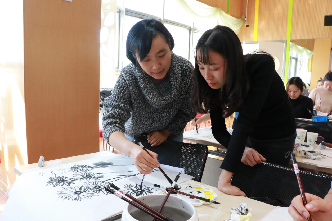 本次活动让大家体验到了水墨画独特的绘画技巧和高雅的审美意境,一幅幅美丽的秋菊在教师们笔下盛开,各具芬芳。