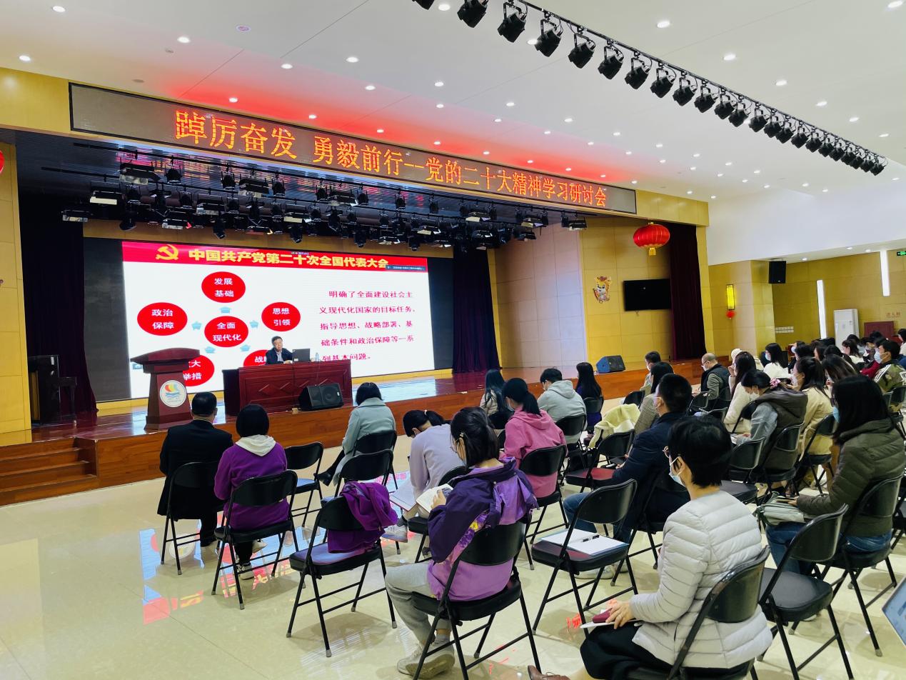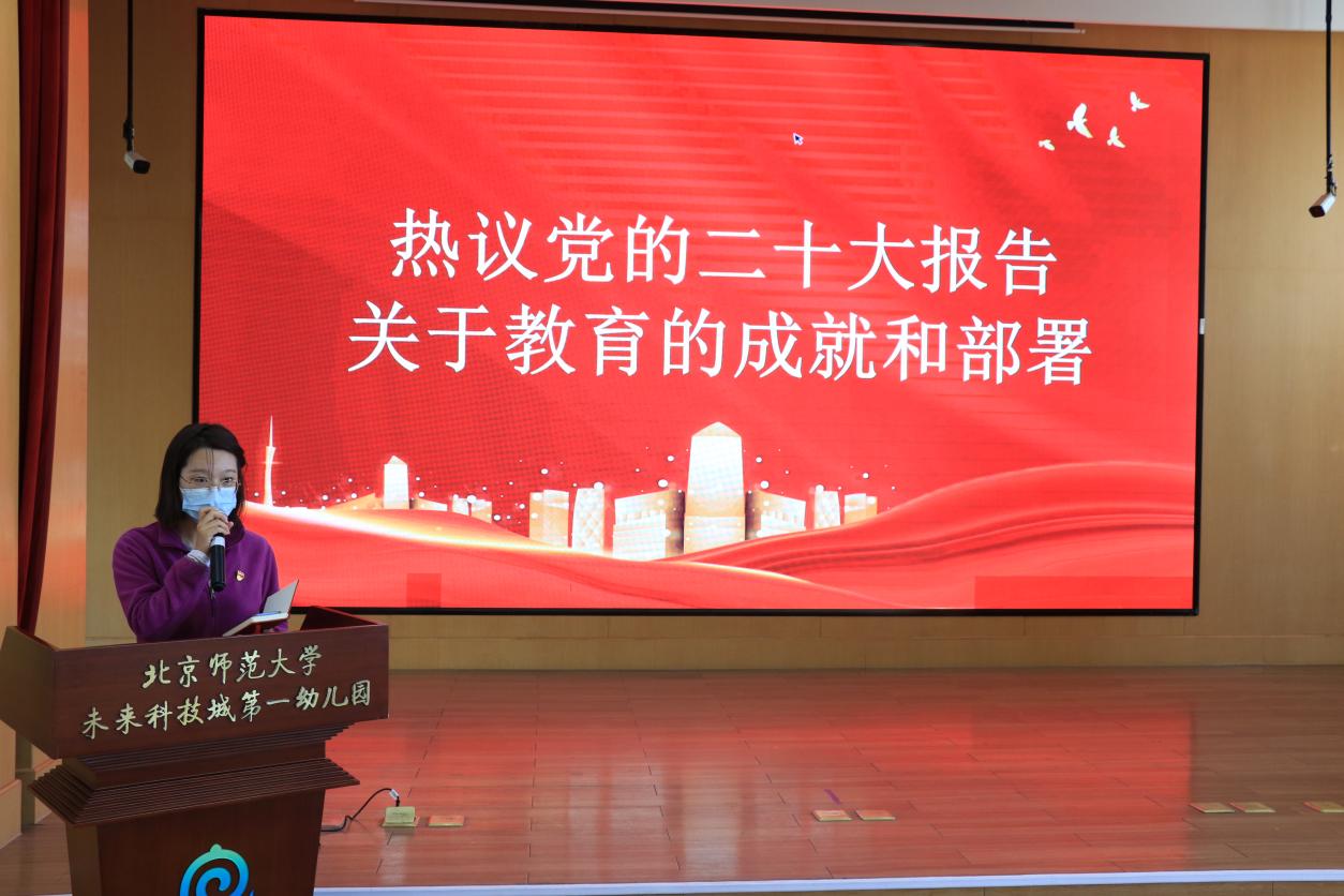 2022年10月24号,九游体育未来科学城第一幼儿园全体党员、入党积极分子、入党申请人员有幸参加中央党校教授唐爱军“踔厉奋发 勇毅前行——党的二十大精神学习研讨会”。唐爱军教授以党的二十大中心思想——全面建设社会主义现代化国家的政治宣言和行动纲领为主题,为全体教师重点解读了习总书记在二十大报告中所提到的“十个明确”“十四个坚持”“十三个方面的成就”。唐教授精彩深入的讲座,让全体教师深入领悟了二十大精神文件。