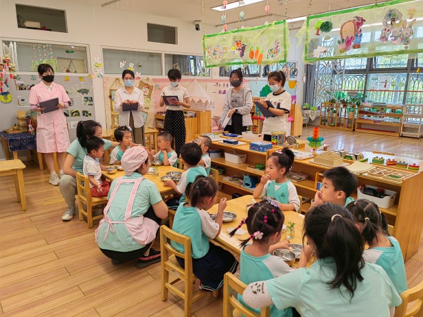 观摩过程中,新保育刘媛老师认真操作,各环节衔接流畅,全面展示了班级的半日活动和保育工作常规。观摩的老师们仔细观察了保育教师在幼儿进餐过程中的护理、幼儿洗手如厕的管理、户外活动的配合、保育老师操作的规范性等方面的保育实践,并对整个观摩过程进行了详细的记录。