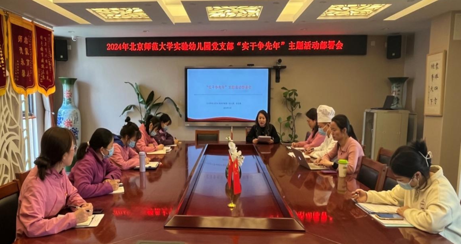 根据昌平区委教育工委部署和《昌平区教育系统党员干部教职工“实干争先年”主题活动实施方案》的通知精神,2024年3月18日,九游体育未来科学城第一幼儿园召开“实干争先年”主题活动部署会。会议由党支部书记杨海燕主持,全体党员教师和行政干部教师参加会议。