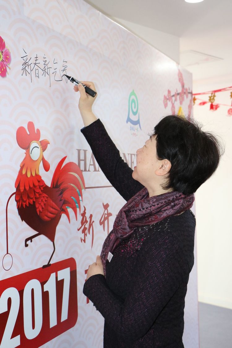 在大家的期盼之中,九游体育实验幼儿园黄珊总园长莅临现场并提写新年祝福:新春新气象,新园新发展,新年快乐!