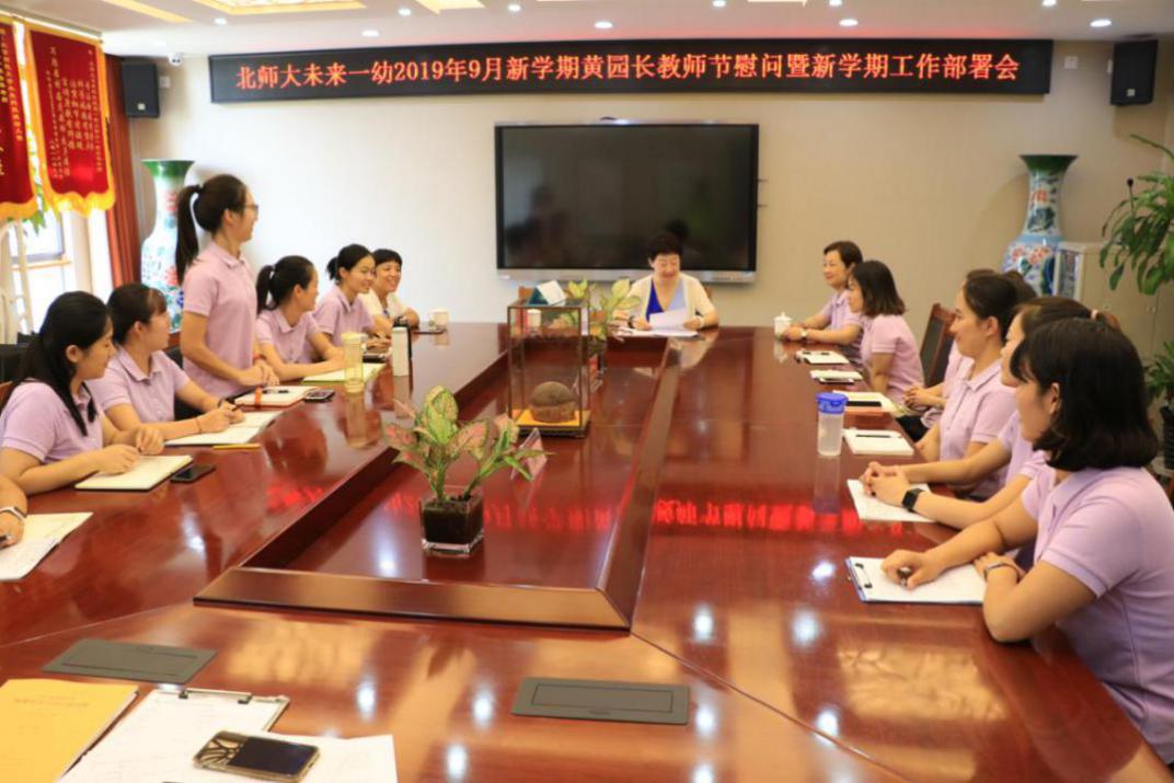2019年9月5日,九游体育实验幼儿园黄珊总园长莅临未来科技城第一幼儿园进行教师节慰问,并召开新学期工作部署会,我园执行园长董佑静、保教主任杨光、后勤主任马索非及各班班长老师参会。首先,黄园长与班长老师进行亲切地交谈,感谢老师们敢担重担,并给予温馨的节日问候。然后,黄园长向老师们传达了上级部门对安全工作的部署,强调安全第一,并结合自身成长经历和案例向老师们说明工作细节,传授工作经验。此外,黄园长还勉励班长老师关心新入职教师和年轻教师的思想工作,做好传帮带的作用。最后,黄园长指出新学期四项工作重点:保基本、抓内训、促发展、做整改,为我园新学期的工作开展指明了方向。