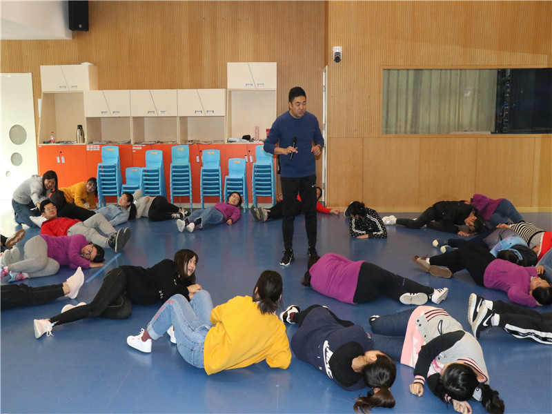 中午,徐老师从"走""跑""跳""钻""爬"的基本动作出发,为教师梳理了不同年龄段适宜的体育活动内容,并为教师分享室内体育活动组织的多种形式。开拓了教师的思路,传递了科学的教育方法。