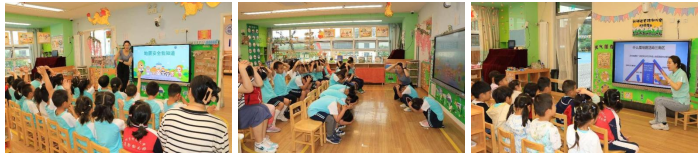 2023年5月19日,幼儿园开展抗震逃生演练。听到地震预警警报声音后,班级老师迅速组织幼儿躲避到合适的地方。地震警报声音停止后,班级教师立刻有条不紊地带领幼儿按照规定的路线疏散到操场。