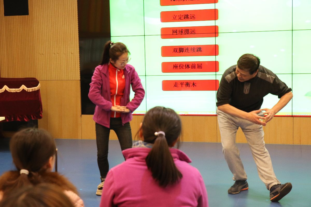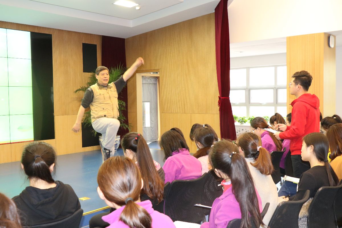 张老师作《幼儿体质测试》专题讲座并与教师现场互动。