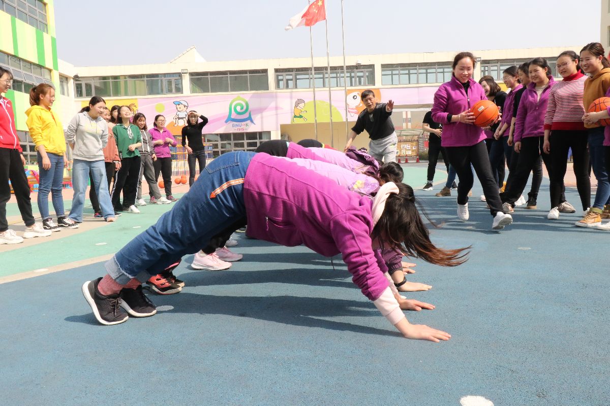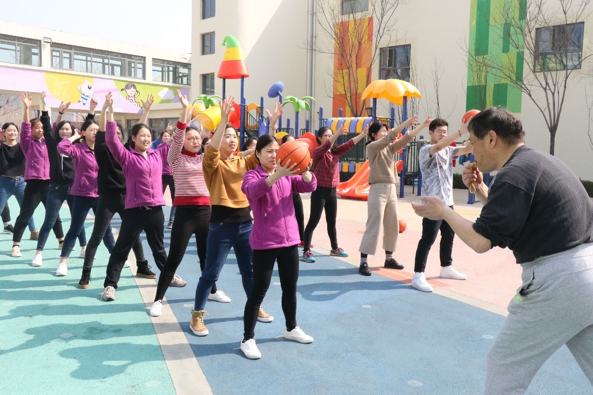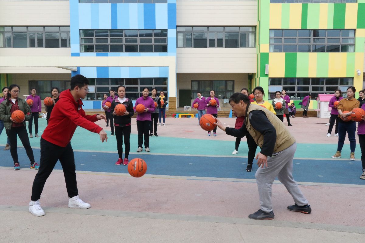 阐明了体育教育的内涵。其次结合幼儿体质测试内容,由浅入深,由理论到实践,针对每一个项目的关键要素及实操方法给予了教师落地的指导。最后,张老师亲自带领教师在户外进行体育游戏,让教师在参与过程中真正理解并清晰幼儿体育游戏指导的方法策略。下午的时间,张老师还专门带领教师体验了篮球的多种玩法,启发教师在游戏中思考,在实践中成长!