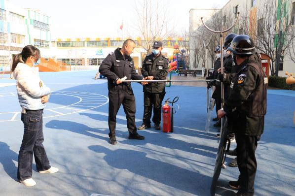 随后,丁副所长带领我园保安进行了防恐处突专项演练活动,肯定了我园严谨扎实的安保工作。在正确使用安保器械的基础上,丁副所长进一步强调了应对突发事件、以及早晚高峰时期人员之间配合的重要性及方式方法。通过指导,保安更加明确自身责任,增强了安全防范意识和技能。