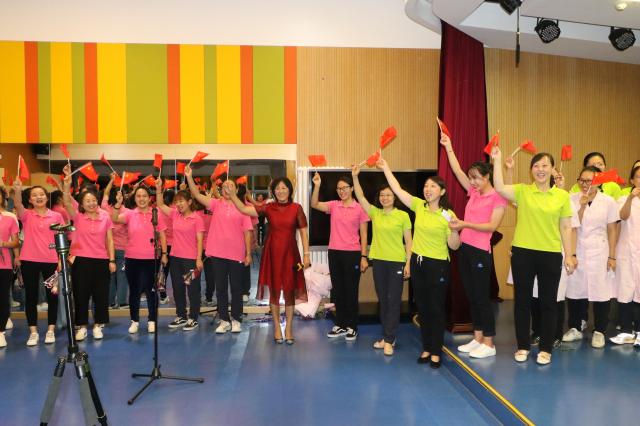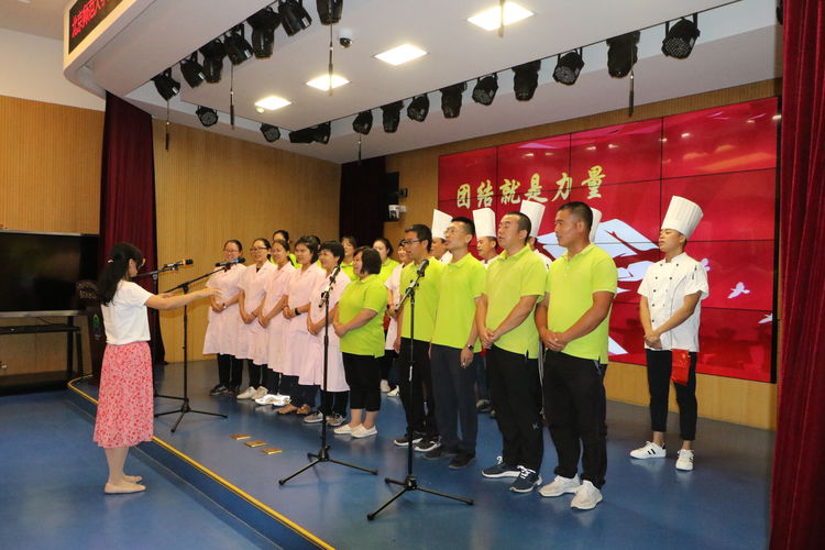 后勤合唱《团结就是力量》,让全体教职工感受了团结的力量,感受了家的温暖。