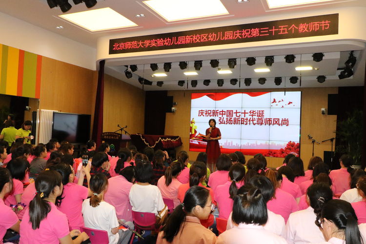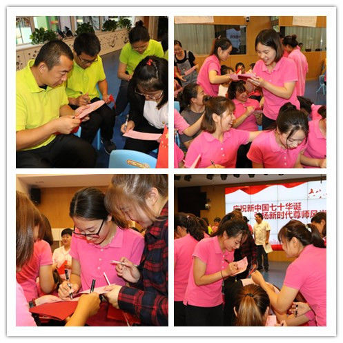 2019年9月10日九游体育新校区幼儿园全体教职工隆重庆祝第35个教师节。庆祝会上,九游一起用誓词表达对理想信念的坚定与憧憬,用游戏增进对团队的理解与信任,用歌声表达对工作的热爱与责任。执行园长孙秀莲还特别为爱岗乐业、团结奉献的教师们送上了殷殷祝福与期望。