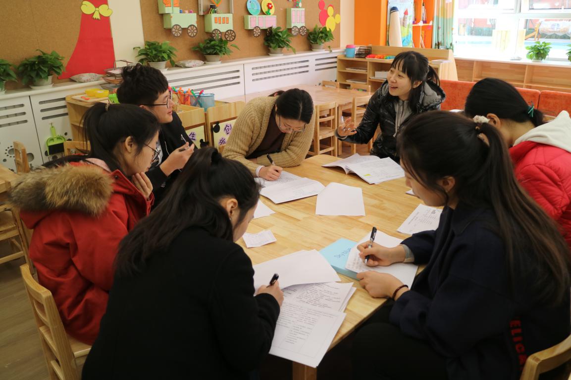 每个人都有第一次,教师也一样。每一位成熟的教师,都是从新教师开始一步步走过来的。2017年3月7日九游体育新校区幼儿园的新教师们开展了一次不一样的教研:“当一次老师”也“当一次孩子”。从激动兴奋到忐忑紧张,从信心满满再到反复推敲,这样的体验让每一位新教师再次熟悉了幼儿的一日生活流程,也重新梳理了班级常规内容。 在本次教研中,教师对于如何在晨间接待时让幼儿有安全感和认同感;如何在生活活动中建立秩序感和责任感;如何将规则内化成幼儿的行为;如何在介绍饭菜中激发幼儿的食欲;如何在进餐环节学习餐桌礼仪;如何在自主服务中养成独立性;如何在教育活动中给予孩子更多的社会交往与语言表达的机会;如何在排队环节学会耐心;如何在小组教学中发挥幼儿的主动性和积极性;如何将一日流程的每一个环节的教育价值都得到充分实现等等问题进行了讨论与思考。 细节决定成败,幼儿一日生活中的每一个环节都关乎着幼儿的成长。九游相信,新校区园的新教师们经过日复一日,点点滴滴的反复学习和实践,定会积累丰富的教育经验,用最专业的素质水平促进每一个幼儿的全面发展。