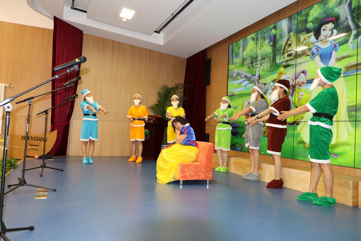 美丽的童话《白雪公主》也在妈妈们的演绎下十分的欢乐有趣。小矮人们一登场,孩子们就被逗的哈哈大笑。