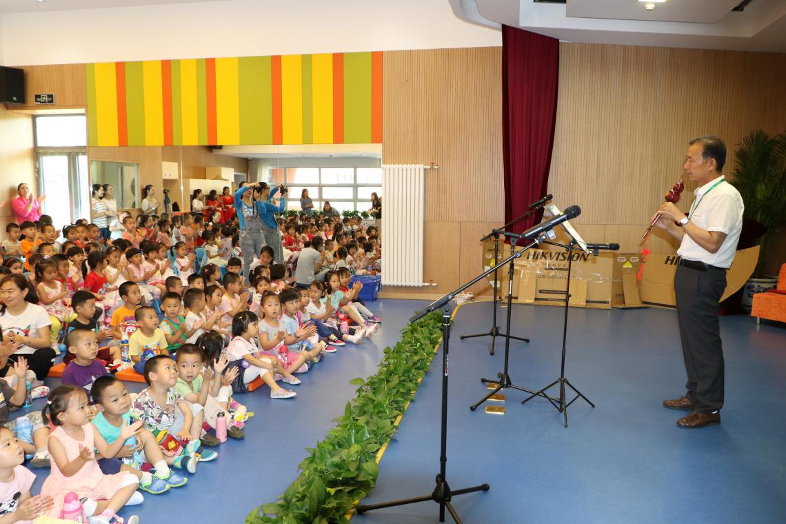 两位多才多艺的爷爷也为小朋友们带来了美妙的器乐演奏《小苹果》和《世上只有妈妈好》。葫芦丝和萨克斯都是小朋友们平时不容易接触的乐器,它们独特的音色一下子就把小朋友们的耳朵给吸住了。
