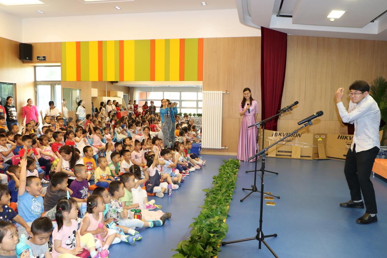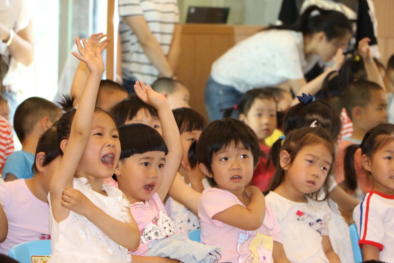 六一的活动自然也少不了小朋友们的参与。节目中间,主持人还和孩子们一起开展了“你比划我来猜”的趣味猜谜游戏。孩子们积极地思考,大胆的举手,声音响亮的回答问题。