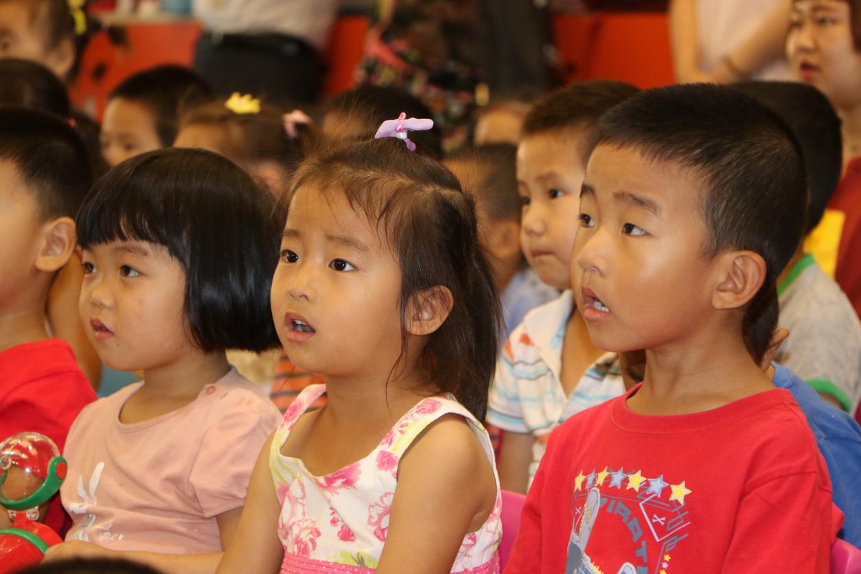 小观众们被精彩的节目吸引,专心的看着舞台上家长们的表演,不时的放声大笑,不时的鼓掌欢呼,有的看到紧张的情节时还不自觉的捂住眼睛,从指缝里偷偷的观看。