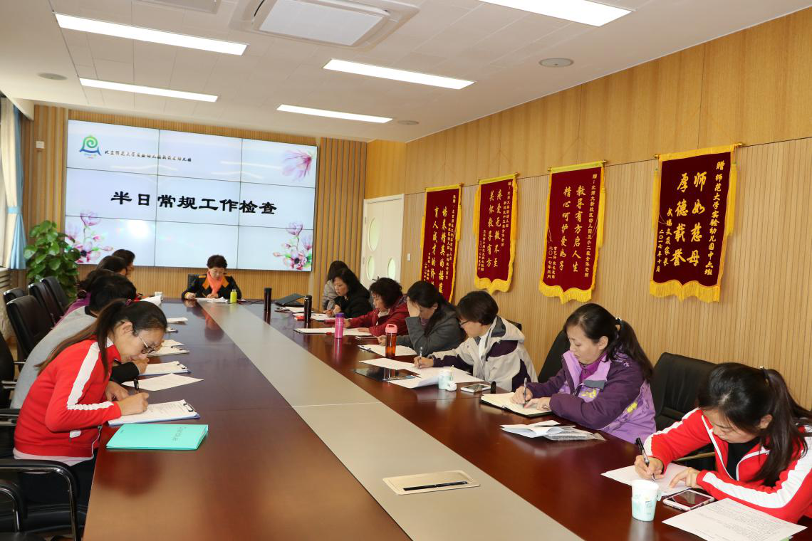 2017年11月8日,九游体育实验幼儿园总园长黄珊莅临新校区园检查常规工作,总部后勤督导王秀清、牡丹分园后勤主任王冬生、奥林分园后勤主任李秀玲、园长行政助理郭美娟、总部科研室教研员吴迪随行。此次常规检查临时抽查两个班级,检查组分成两组分别进入中二班和中六班观摩半日活动,下午,检查组成员与班级教师及幼儿园行政团队进行了深入的反馈和研讨。总园长黄珊肯定了新校区园两个月以来在常规培养方面取得的成绩和付出的努力,同时强调了幼儿园保育工作的重要性,要求教师在日常教育教学工作中关注细节,重视保教结合。鼓励教师们脚踏实地让九游体育实验幼儿园的精神得到更好的传承和发展。