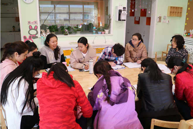 “学然后知不足”。展示活动结束后,孙园长及教学主任韩老师带领大家进行集体教研。通过自评与他评,教师们及时发现了活动过程中存在的问题,并进行了深入思考与改进,有效的促进了教师们教学能力的提升。