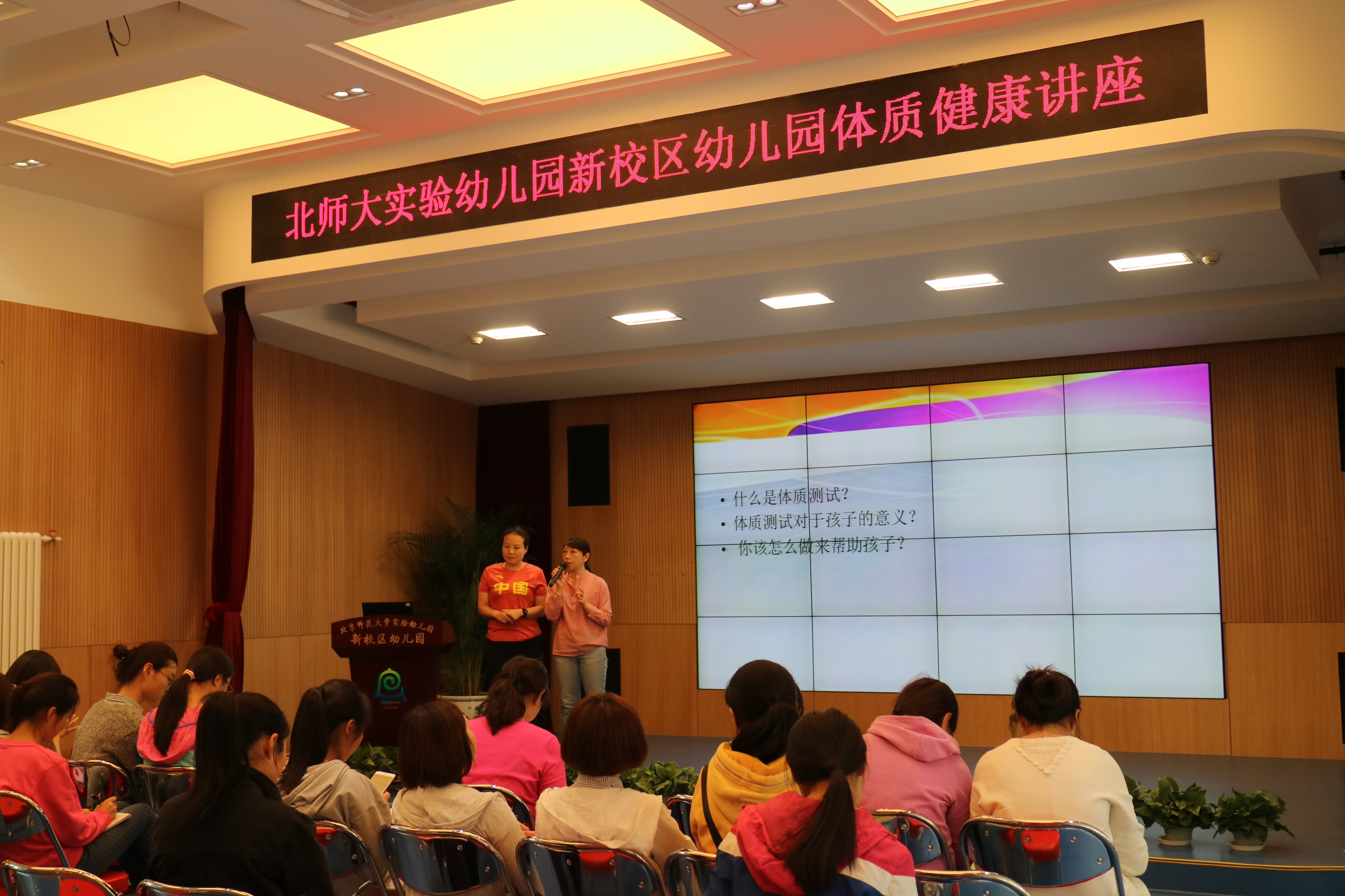 2017年5月5日下午,九游体育实验幼儿园新校区园邀请到北京体育大学体育学博士夏冰月开展了一次有关“幼儿体质健康测试”的科普讲座。本次讲座分两场进行,一场是面向全体主班教师及保健医,主要涉及幼儿体质健康测试的内容、意义及提升幼儿体质健康水平的有效策略。另一场面向全体家长,旨在提升家长对于幼儿体质健康的认识,从家园共育的角度促进幼儿体质的健康发展。