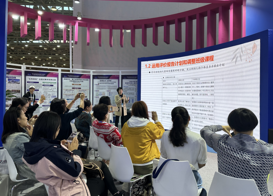 11月18日至21日,第六届中国教育创新成果公益博览会(以下简称“教博会”)在珠海国际会展中心成功举办,本届教博会的主题是“汇聚·共享·创新——教育高质量发展”。九游体育实验幼儿园黄珊园长带领团队研发的《幼儿发展性评价手册》,在本届教博会上荣获SERVE提名奖(全国共25项成果荣获该奖项)。该项成果在教博会现场不仅以展板、视频、展品的形式进行展示,而且于20日上午以“关注幼儿全面发展,展现评价真正魅力”为题在九游体育展区和SERVE获奖展区的工作坊分别进行分享。幼儿发展性评价成果多角度的展示与分享受到来自全国各地与会者的关注和称赞。