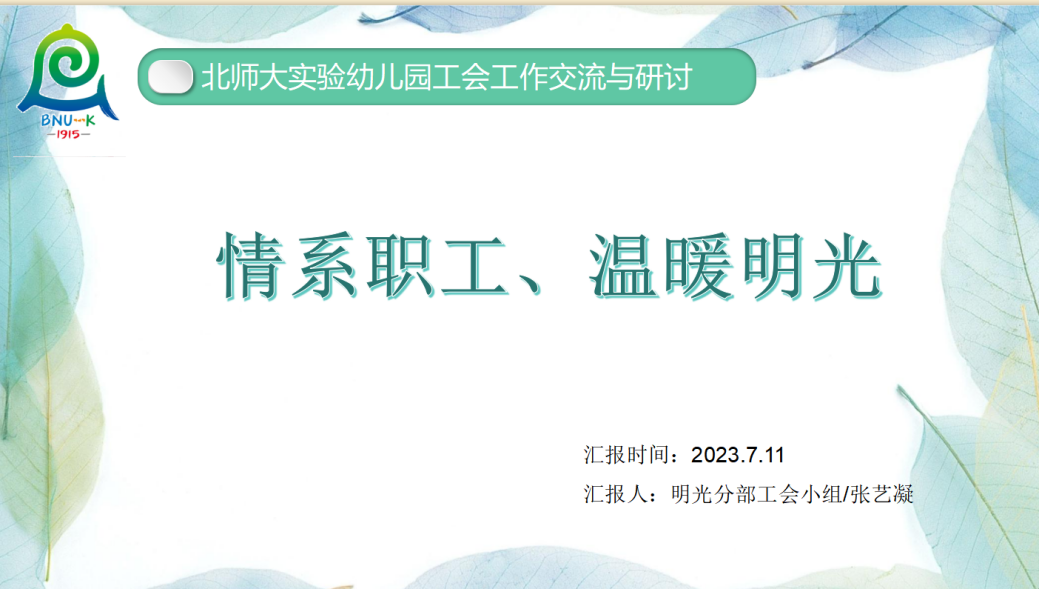 各分园工会组长对各园本学期工会活动总结及下学期工作计划进行汇报。各分园工会结合我园党务中心任务、总部工会要求及职工群众意愿,开展工会服务调研,组织丰富多彩的文体活动,丰富教职工文化生活,积极帮助教职工解决实际生活中的困难和问题,全心全意为教职工服务,办实事、办好事,增强了工会的生机与活力。