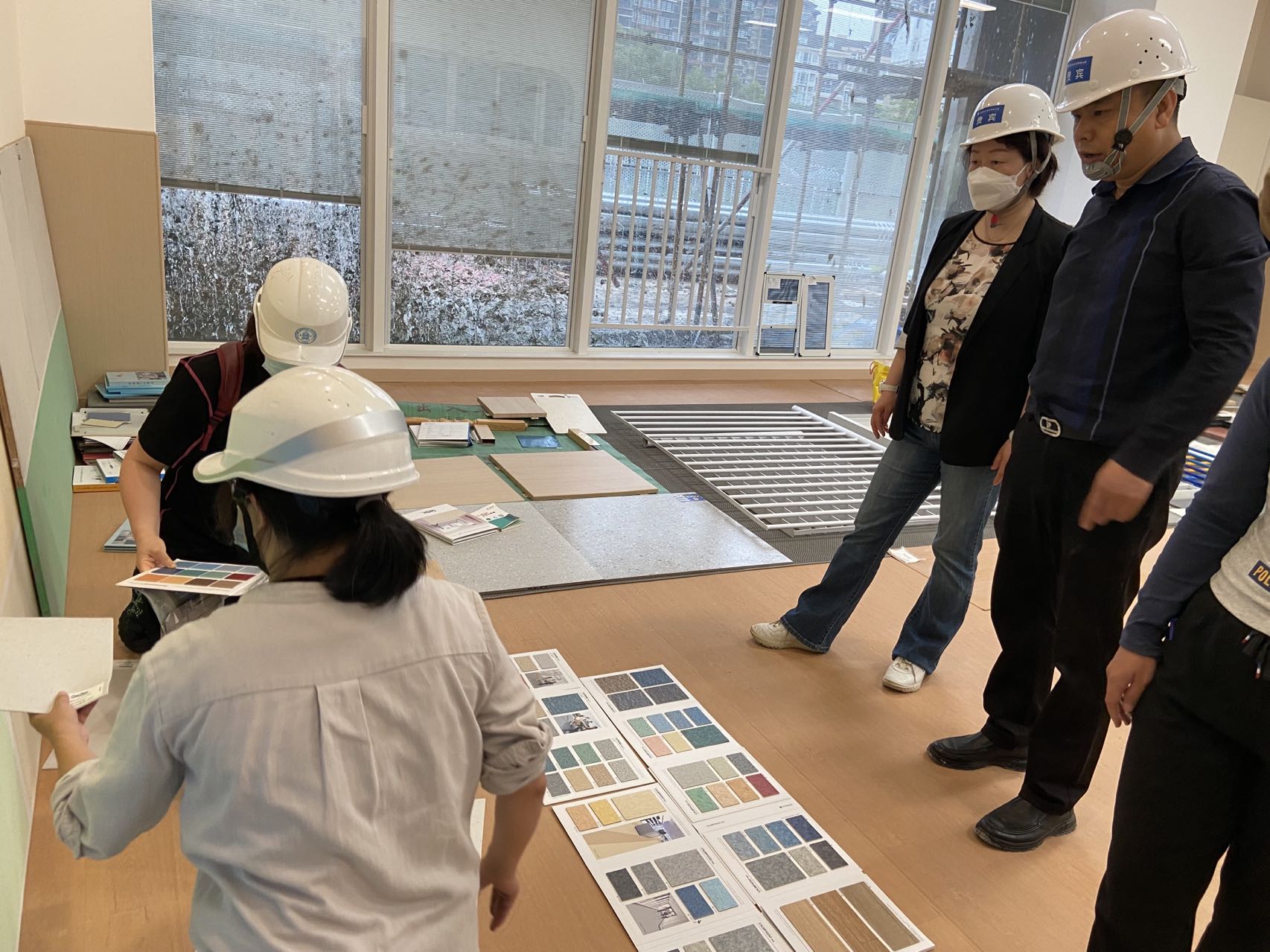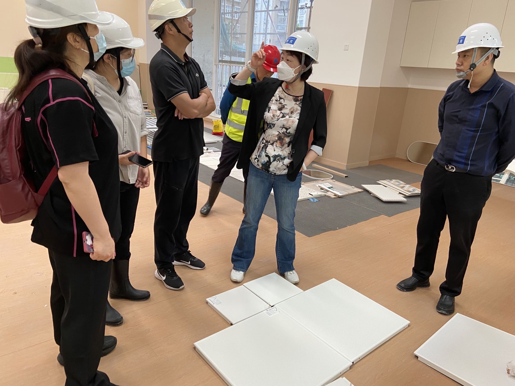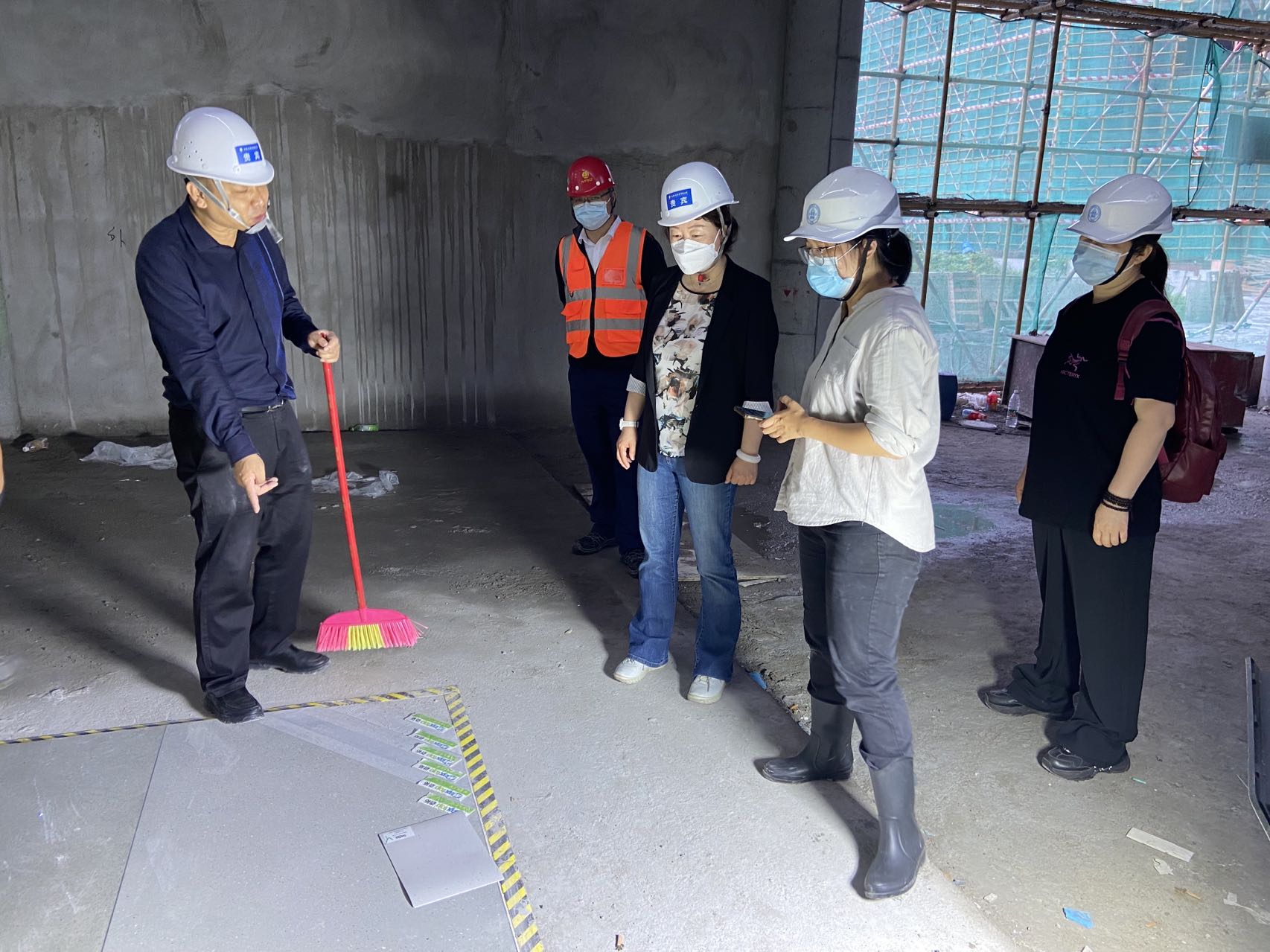 7日在珠海实幼施工现场,黄珊总园长听取了珠海校区总工程师陈明阳对近期工程建设的汇报,基建处、建筑等相关单位工作人员陪同介绍和说明。随后,黄珊总园长与工作人员对比挑选了教室的地板、瓷砖、铝扣板、楼道大理石、楼梯地胶、儿童衣柜等材料,对部分教室工程的施工以及外墙立面试涂色提出了意见和建议,此外,还查看了顶楼的护栏。