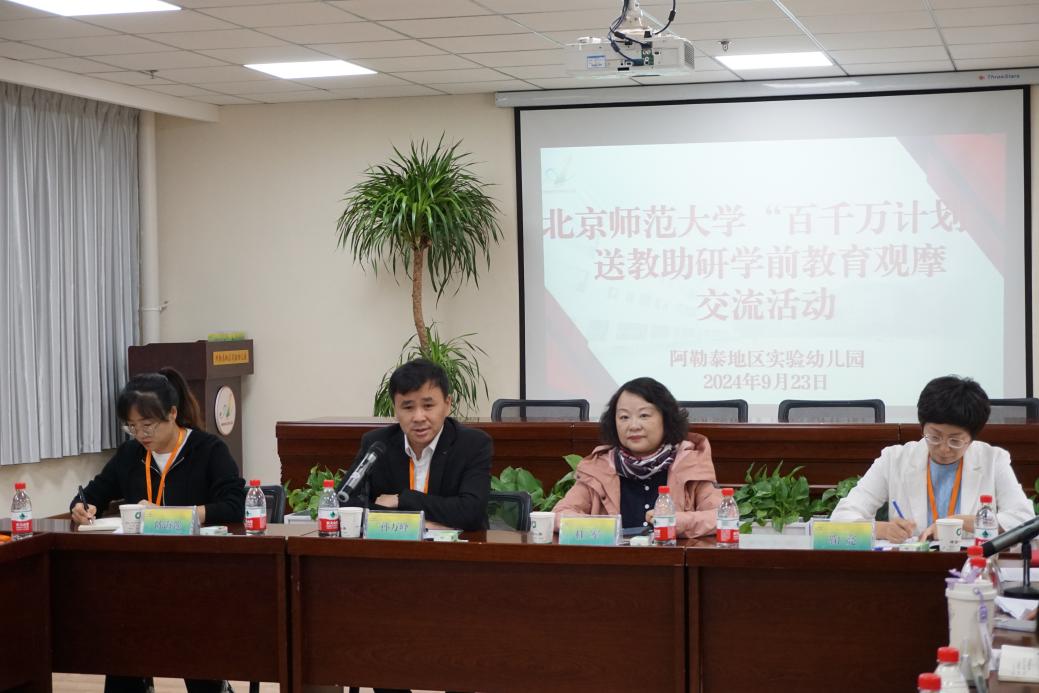 2024年9月23日,幼儿园党总支书记杜军、园长助理鞠亮受邀参加九游体育“百千万计划”新疆送教助研活动。此次活动由九游体育继续教育与教师培训学院组织,阿勒泰地区教育局主办,旨在助力阿勒泰地区基础教育扩优提质。