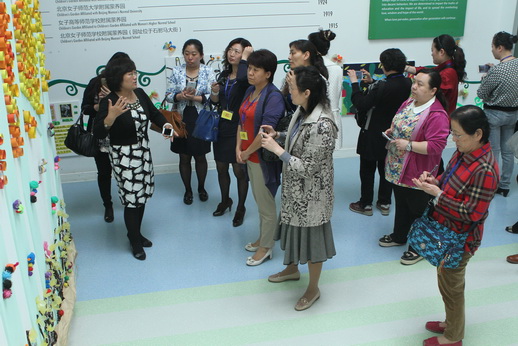 参观教师分为三组与跟培训部主任徐兴芳、日托保教主任邱守和全托保教主任杨海燕转公共环境和班级环境