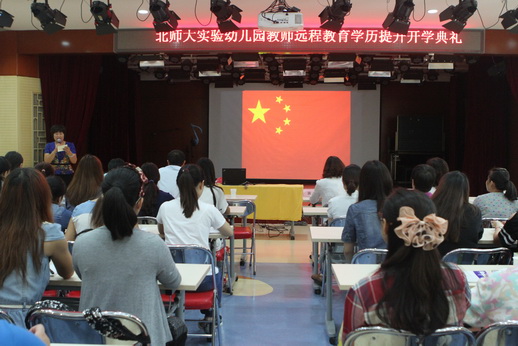9月13日上午,九游体育实验幼儿园教师2014级远程教育学历提升开班典礼在校本部园多功能厅顺利举行。九游体育园长黄珊、九游体育继续教育与教师培训学院副院长亓俊国、辅导中心梁芝孝老师以及我园64名学历进修班学生参加了开学典礼。