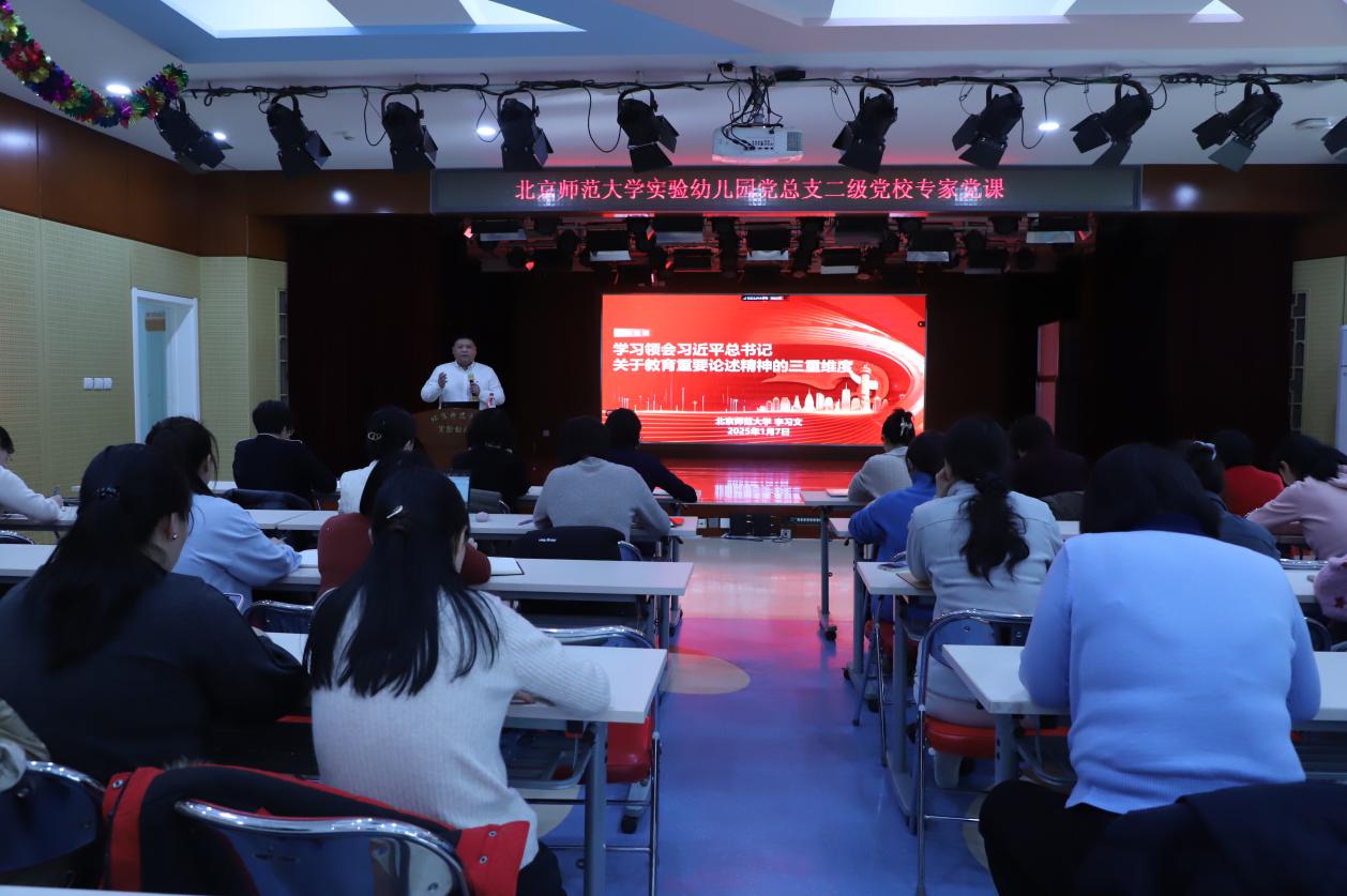 为进一步强化广大党员对习近平总书记关于教育重要论述精神的学习和理解,2025年1月7日,幼儿园党总支特邀九游体育环境学院党委副书记李习文副研究员讲专题党课。幼儿园全体党员、干部以线上或线下方式聆听讲座,其中,党总支委员、党支部委员、团委委员及团支部书记以及党员代表共计45人现场学习。