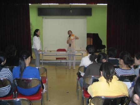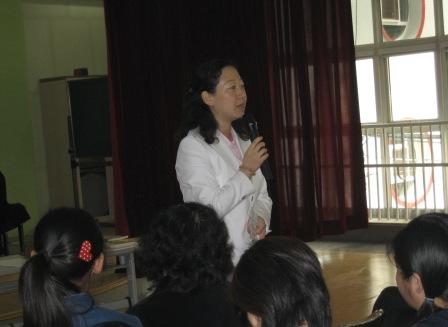 黄园长在向本园教师介绍幼儿园本学年的工作目标