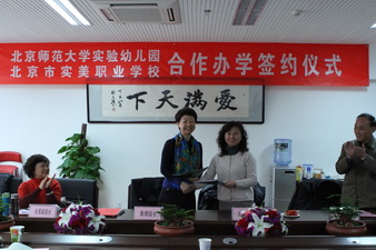 2012年3月19日,我园与北京市实美职业学校合作办学的签约仪式在校本部园隆重举行。这次合作办学,园、校双方优势互补、资源共享,开辟了幼教师资培养的新模式,不仅能够帮助职业学校的学生迅速适应工作要求,实现学生就业和幼儿园用人的顺利对接,而且,这种办学模式使得用人单位能够直接参与到学校的课程设置中,对于大中专院校的课程改革也具有重要的意义。