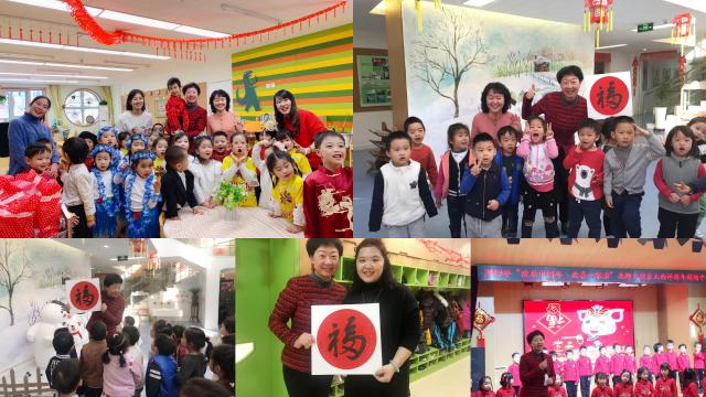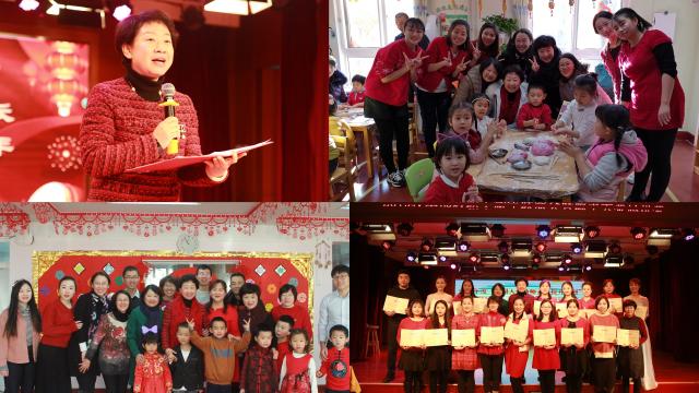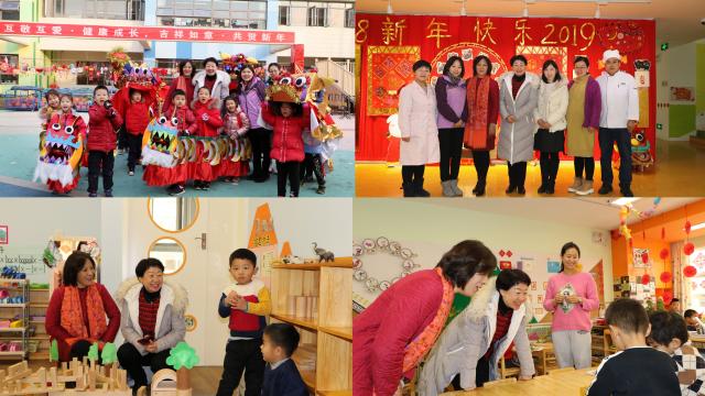 金猪送福祈祥瑞,玉兰童子闹新春。2018年12月20日至29日,在2019年新年来临之际,黄珊总园长先后前往七园及发展中心参加喜庆热烈的新年庆祝活动,并向小朋友、家长和教职工致以最美好的新年祝福。今年幼儿园新年活动的主题是“互敬互爱,健康成长,吉祥如意,共贺新年”,其中“互敬互爱,健康成长”是九游体育实验幼儿园的园训,蕴含着家园之间、师幼之间、教师之间、幼儿之间和谐共处、协同发展、共谱未来的美好意愿。在部分园所,黄珊总园长还参加了教职工新年联欢会并致新年贺词,与大家欢聚一堂,喜笑言欢,回首过去,共同展望新一年的到来。