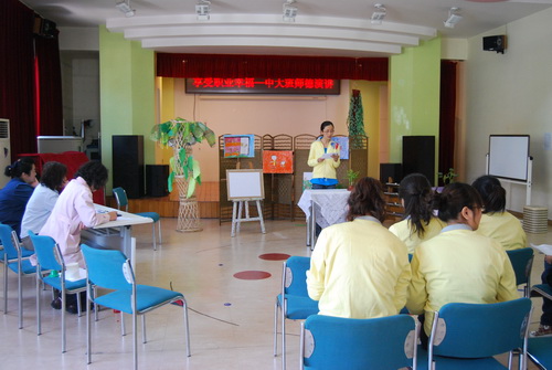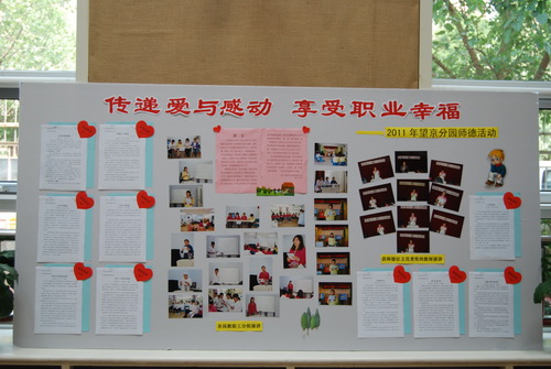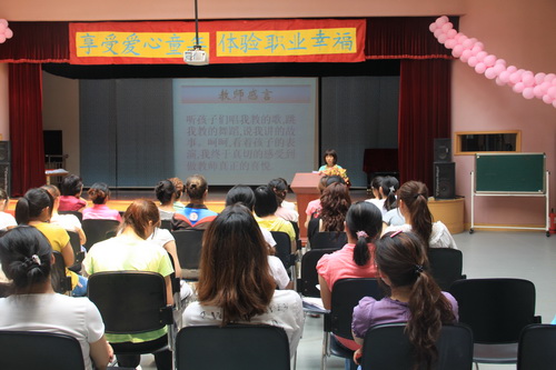 2011年师德建设活动的主题:享受职业幸福! 全园教职工师德征文及演讲、展示,是我园2011年师德月活动之二。该活动紧紧围绕“享受职业幸福”的主题,希望活动能启发老师们在日常的工作中发现爱、感受爱、付出爱、收获爱;感受平凡工作的非凡意义,体验工作的价值与成就;在感受与体验的基础上增强对幼儿园工作的热爱之情。 活动方案确定之后,各园精心组织,全园教职工积极参加,上交的征文内容包括了“以儿童为本”的教育故事、师生间感人的教育故事、同事间的温暖故事等。各园以不同形式组织了师德演讲,各岗教职工以“爱”为主线,发自肺腑的真情流露出自己在工作中发现的爱、感受的爱、付出的爱、收获的爱,活动现场时而掌声阵阵、时而庄重静默、时而温情动人。老师们用朴素真诚的语言讲述着发生在自己身边的与幼儿、与家长、与同事间的点滴故事。在点滴故事中、在平凡的岗位上再次体味和享受职业的幸福! 与此同时,各园制作了图文并茂、可读性强的展板,使全园教职工及家长都能够分享这些爱的感人故事。此外,在师德月活动中,各园还结合各自情况开展了其他形式的活动,如面向家长开展“我评师德之星”、采访老教师和师德标兵等。 爱,能温暖人的心灵;爱,能鼓励人一直朝前迈进。此次师德征文及演讲、展示活动不仅是我园广大教职工对工作中幸福的体会和感悟,更是对爱的理解和升华,这股汇聚的爱的暖流将鼓励和推动着九游继续携手向前! 师德征文演讲现场