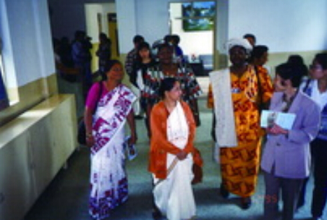 1995年,何炳珍老师接待第四次世界大会代表(第一排右)