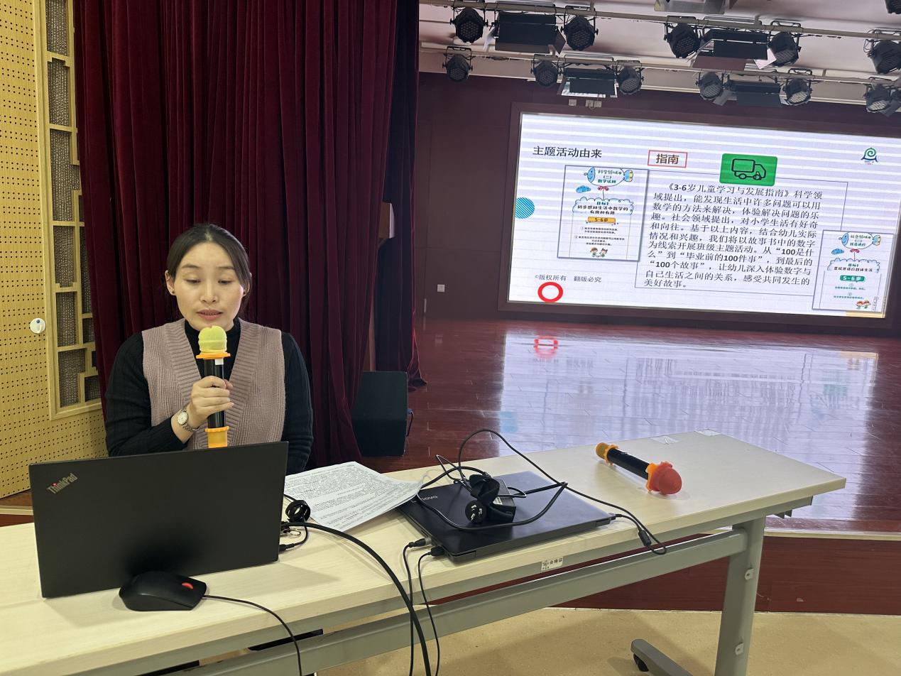 本学期共有34个优秀主题活动案例获奖,其中一等奖3个、二等奖9个、三等奖22个。获得一等奖并在全园进行巡讲的3个优秀主题案例分别是:宋佳《遇见你,真幸“孕”》、梁春芳《100是什么?》、刘萌萌《布上花开》。三位教师通过详略得当的讲述,生动地呈现了主题活动的由来、活动目标、开展过程以及教师的思考与收获,不仅体现了我园优秀主题活动探究性、综合性、师生共建课程的特点,而且展现了教师敏锐捕捉教育契机、尊重幼儿并支持幼儿深入探究学习的具体过程。研究中心李灵子、田瑞清、赵欣分别对三个主题活动进行点评,引发教师们思考的同时,鼓励大家抓住身边的教育契机,结合幼儿已有经验,开展有深度的探究活动;同时要关注情感的激发在主题活动开展中的重要作用。