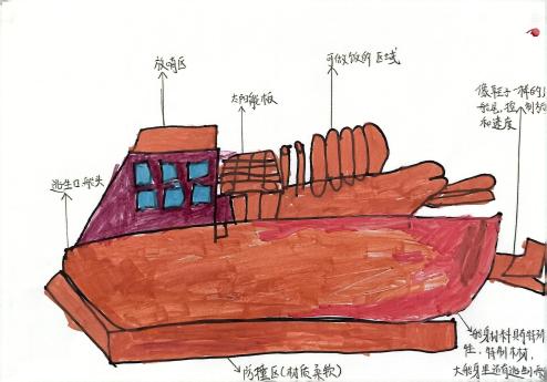 幼儿制作有多种功能区域的红船