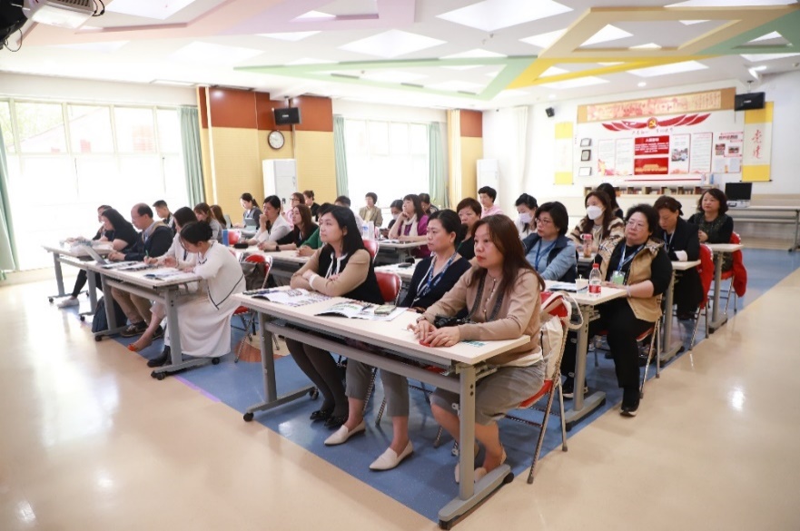 在美丽的海棠树旁,黄珊总园长介绍了幼儿园的整体情况。随后,通过幼儿园宣传片,使香港嘉宾对我园历史、现状、园所文化等情况有了更加生动的了解。在此基础上,黄珊总园长以《幼儿园园本课程的建构》为题,详细深入地介绍了我园发展课程的建构历程与思考。