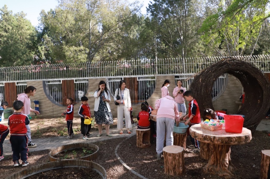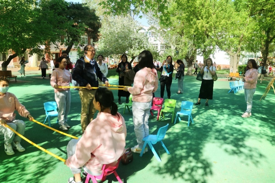 之后,校本部杜军园长及管理团队带领客人走入实践,聆听业务园长及保教主任对于园所环境创设理念的解读,参观图书馆及班级环境,了解班级主题活动的开展思路,观摩园庆游艺活动之“老照片中的童年游戏”,在参观中进一步感受我园丰富多元的课程实践。