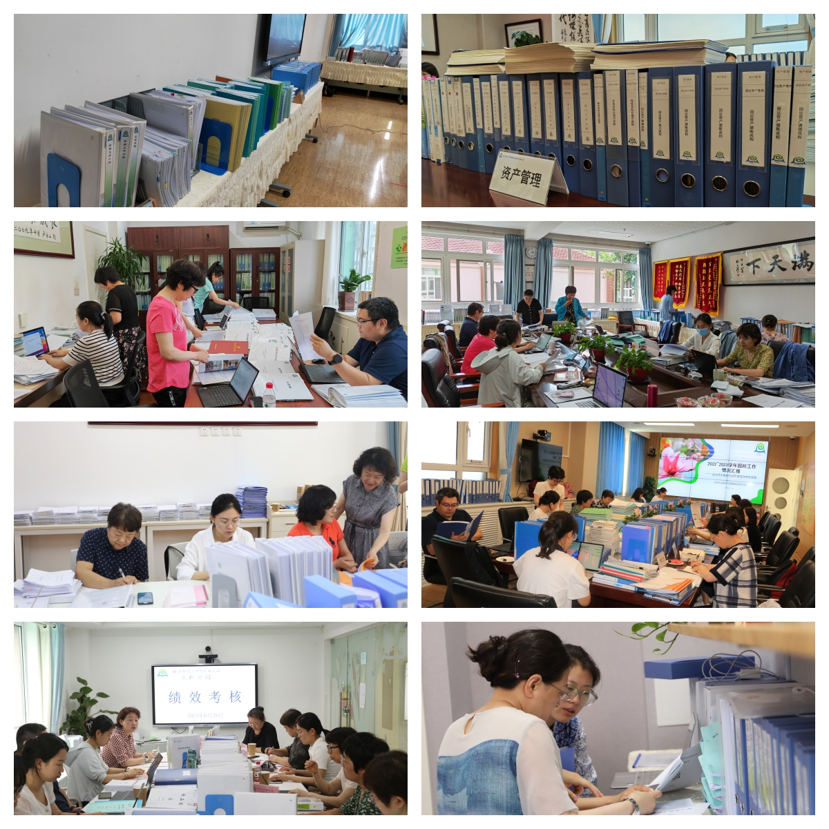 黄园长携同总部督查组,听取分园的学年工作汇报,详细了解党建、保教、后勤等各方面的学年工作情况。总部督查组分组检查党建、保教、后勤安全、人事、采购、资产等工作情况,全面查阅各级流程的实施档案,细致查看电子系统、纸质记录、签字盖章、发票佐证等各项过程性材料。