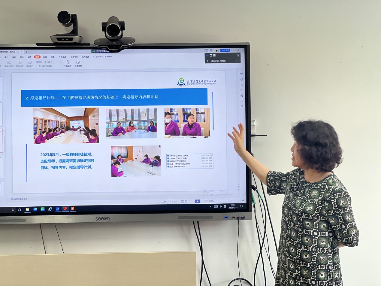 随后,执行园长高以华、徐翠凤分别以《教师开展中华优秀传统文化主题活动现状的调查分析》《以导师制发挥一级教师专业引领作用的行动研究》为题汇报交流了主题教育期间开展调查研究的成果与思考。