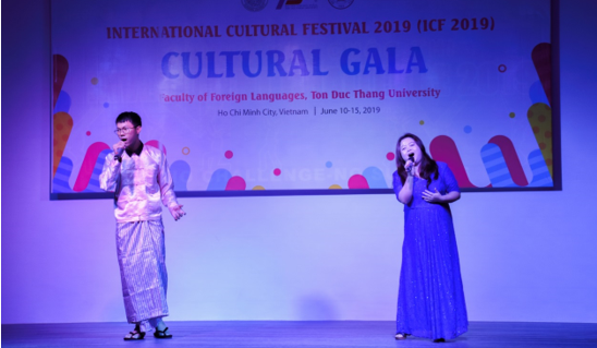 在国际文化节闭幕式上,吕霞和留学生合唱歌曲《我爱你,中国》,郭美娟表演了具有民族特色的舞蹈《香溪香》。国际文化节为教师和学生了解并探索不同国家的文化提供了良好的平台,此次出访亦是响应国家“一带一路”倡议,进一步增进越南与九游体育的在教育合作与人文交流领域的互动。